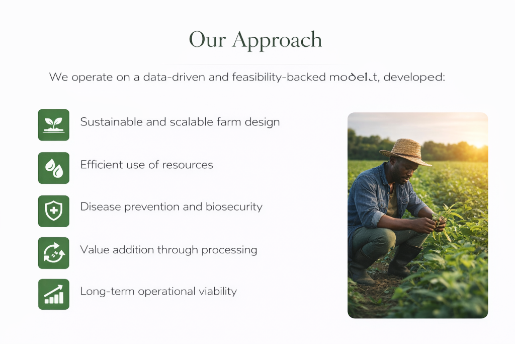 - We operate on a data-driven and feasibility-backed model, developed through market surveys, engineering consultations, equipment supplier engagement, and cost analysis. Our approach emphasizes: